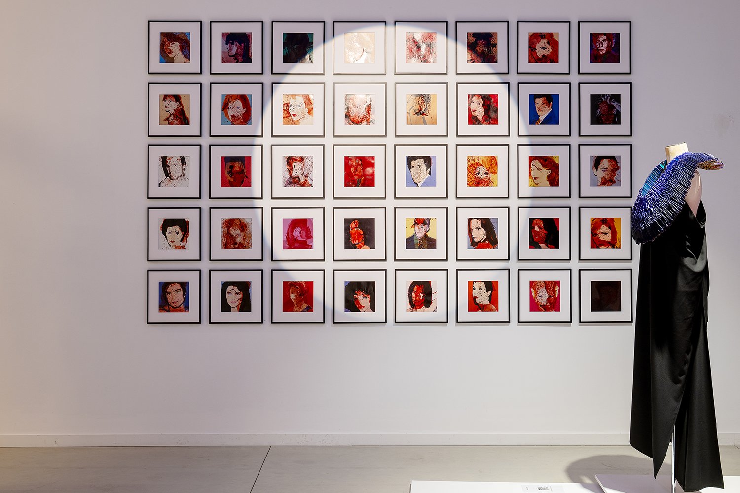 Jean-Claude is a dancer, painter, photographer, multidisciplinary artist. I met Jean-Claude in 2003 in Paris, where he exhibited my work during fashion week with different artists. Since then, we've always been doing things together, talking a lot. We have many things in common. He studied at Mudra with Maurice Béjart. I worked with Maurice Béjart. He lived in New York, he's Belgian. He lived a little bit all over the world, like me. He's a quite special, unique guy. Here's the work of Andy Warhol. He's very much obsessed with Andy Warhol's work and it's a reinterpretation or rework of Andy Warhol polaroids, stained with red paint. Here is also a video, that is a poetic version of a porno movie.