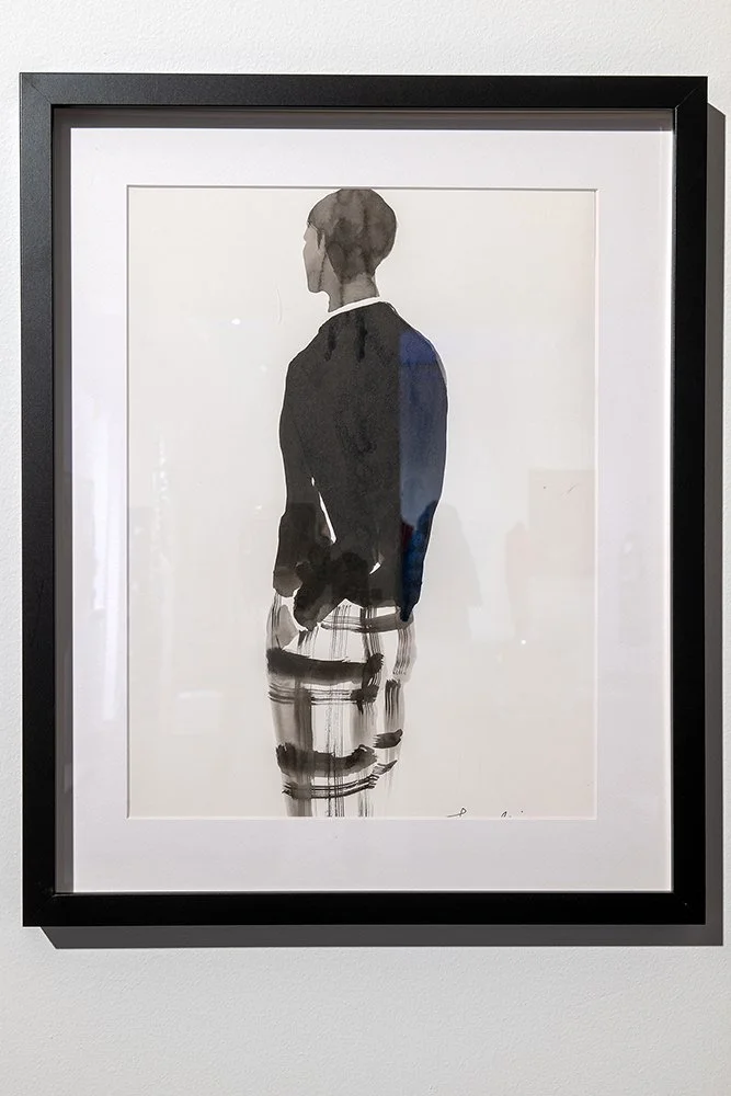 Tamaki Ogata is a very special lady from Japan. She's an illustrator. She's also an artist. She works on porcelain. She also paints on porcelain. She is a full, I would say, Japanese artist. Extremely elegant. Everything is very, very refined. When we opened the Jean Paul Knott shop in Aoyama, Tokyo, she did an exhibition of her work in my shop. She has also become a customer of mine. She's a very unique person and I love her work and her. She managed to elongate the silhouette and the movement of each person.